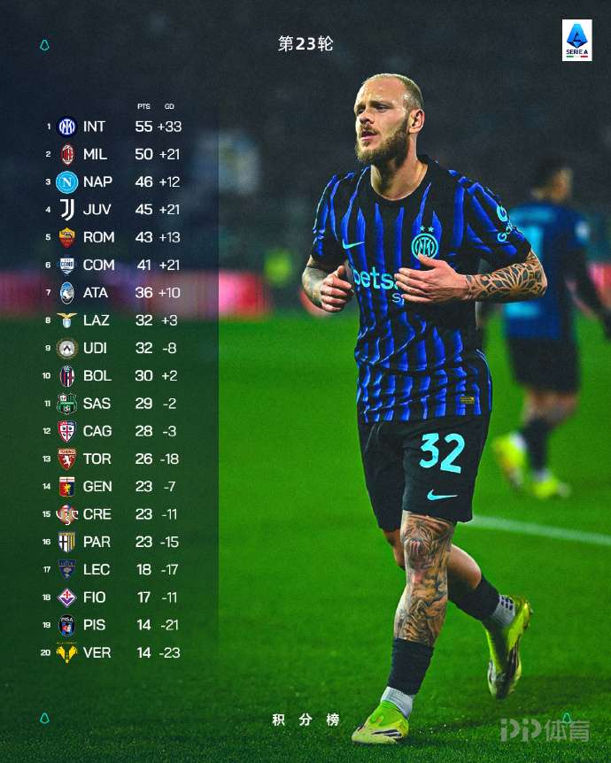 今日AC米兰客场3-0轻取博洛尼亚,本场比赛过后积50分距榜首国米5分。意甲第23轮全部结束,最新积分榜如下。
