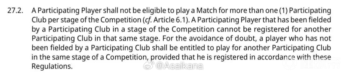 亚冠精英联赛规定,在同一阶段,一个球员最多只能为一家俱乐部出场比赛。但由于第三报名窗口在亚冠第6和第7轮之间,还剩余两轮比赛,因此,上海海港、上海申花、成都蓉城引进的新援中,如果有曾为其他球队出战前六轮联赛阶段比赛的球员(必须上场,替补未登场不算),即使报名也不能在亚冠精英联赛联赛阶段最后两场比赛中出场。