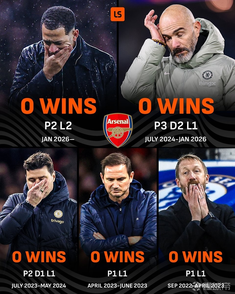 英联杯半决赛次回合,切尔西客场0-1不敌阿森纳,至此,切尔西近五位主帅都能击败阿尔特塔,上一位做到这一点的是图赫尔。